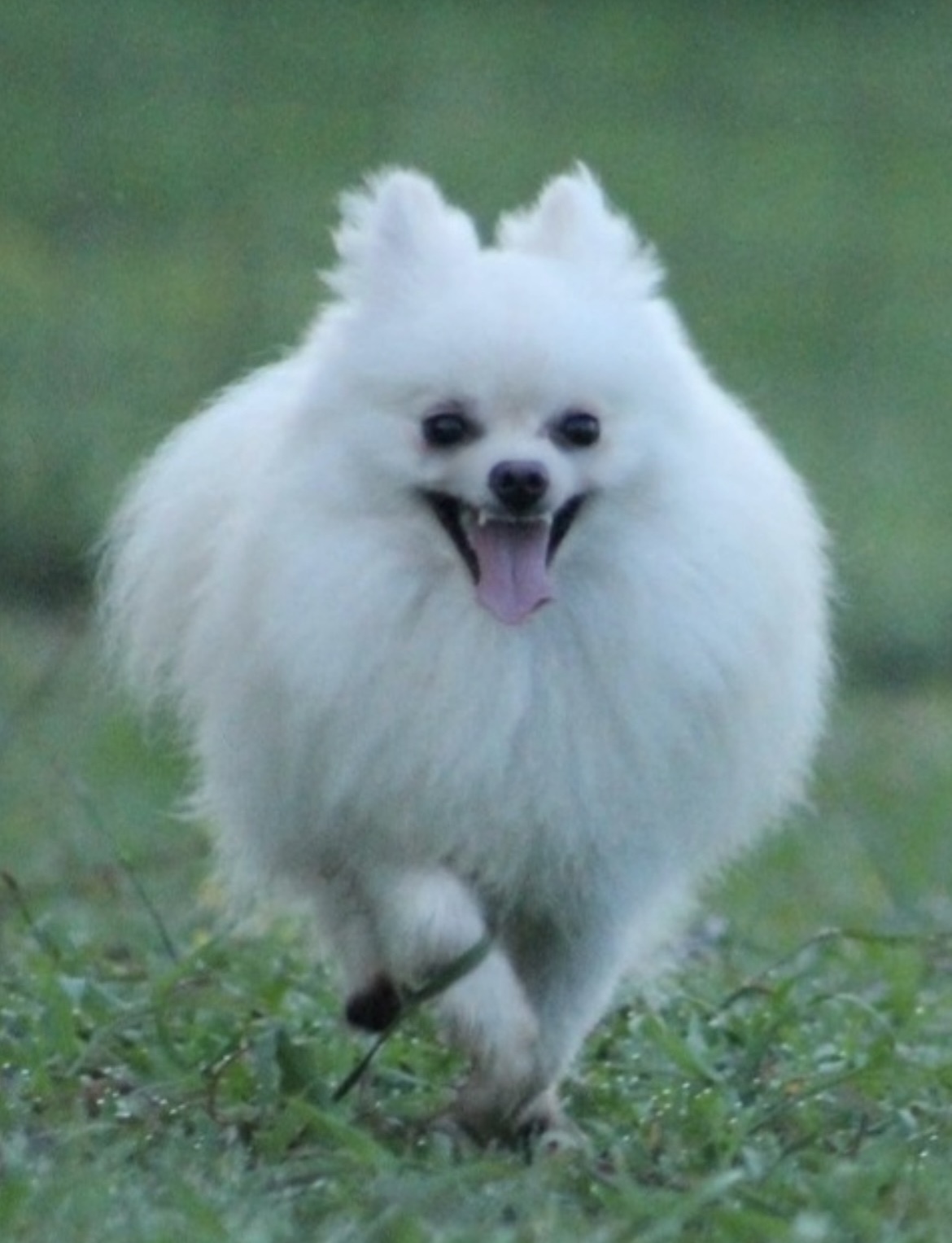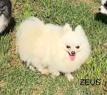 Zeus is a solid white pom and weighs only 4 lbs. He is a Fun boy that loves to run and play.